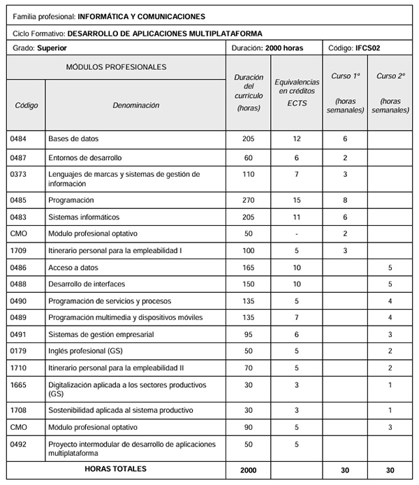 Grado Superior en Desarrollo de Aplicaciones Multiplataformas